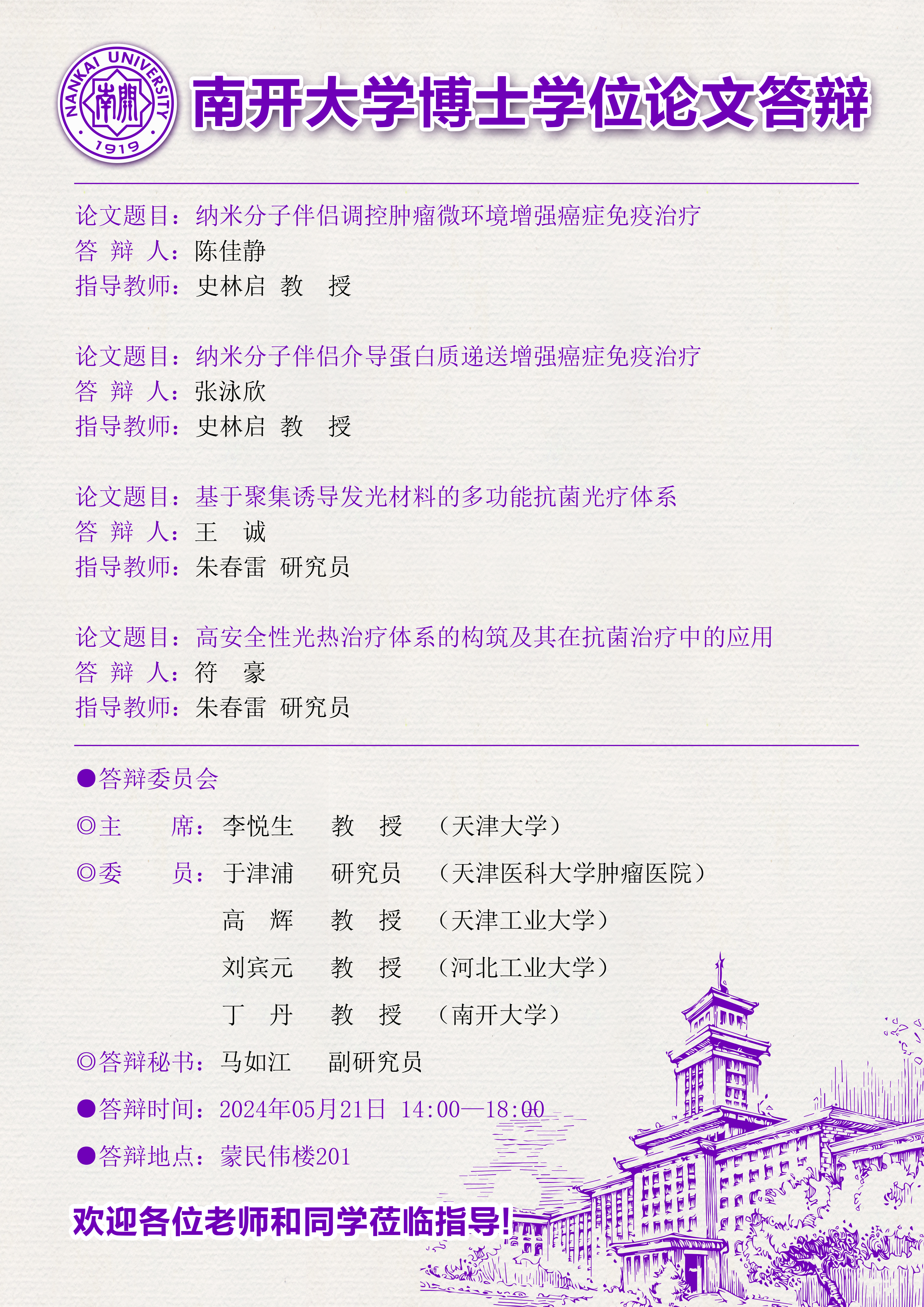 Betway必威博士研究生毕业论文答辩公告 张泳欣 陈佳静 符豪 王诚