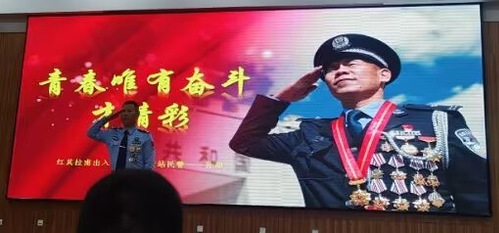 孙超班长结合自己从警数年的人生经历和心路历程,作了主题为“青春唯有奋斗才精彩”的汇报,将自己工作和生活中的所见、所感、所想与在场师生进行分享,以他在“生命禁区”守卫国门平安、在万仞冰峰开辟“十亩江南”的光荣事迹,勉励大家遵从初心,守住清苦、耐住寂寞,用自己的知识和力量为国家、社会和人民做出贡献,书写自己人生事业的华章。