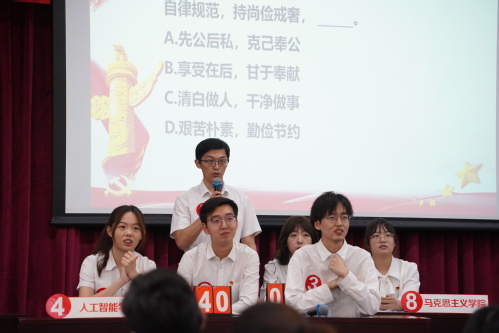 随后,进入激烈的知识竞赛环节。在必答题环节,各代表队伍势均力敌,积分紧咬不放;进入选答环节后,参赛者冷静应战,分差缓缓显现;最后风险题部分,台上选手互不相让;案例分析阶段,选手们聚精会神、从容不迫,以精辟见解彰显了廉洁文化及党纪学习成效,展现了深厚的理论素养。