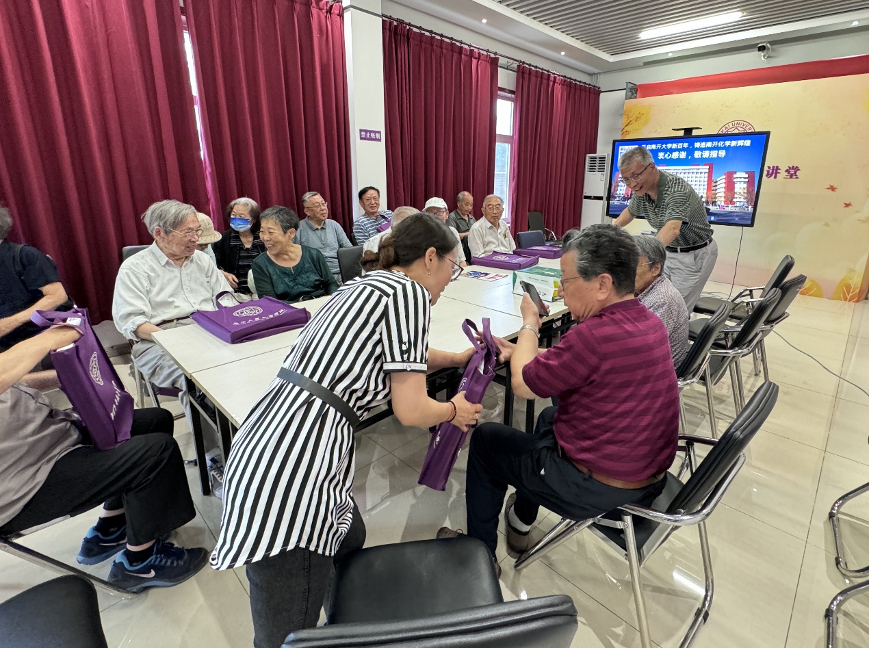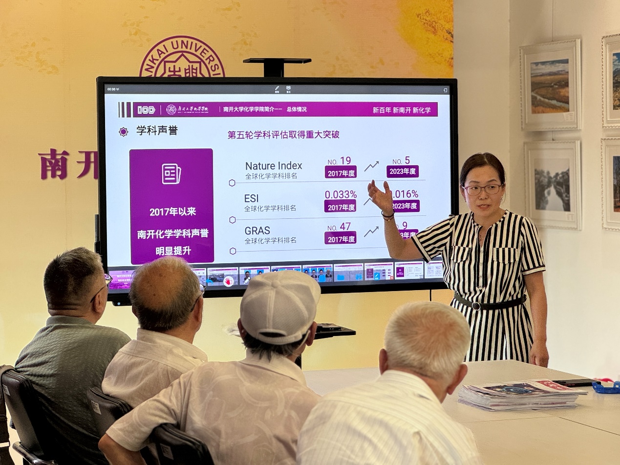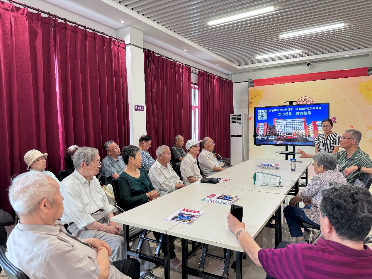 柳凌艳首先感谢退休教师在学科发展历程中做出的重要贡献,是传承南开化学红色基因,赓续百年科教报国精神的重要力量和宝贵财富。很多老师退休后仍一如既往关注和支持学校学院发展,积极参与到党建引领、思政育人、学科发展、队伍建设的各项工作中,为推动“一流”团队建设和服务社会做出了重要贡献。