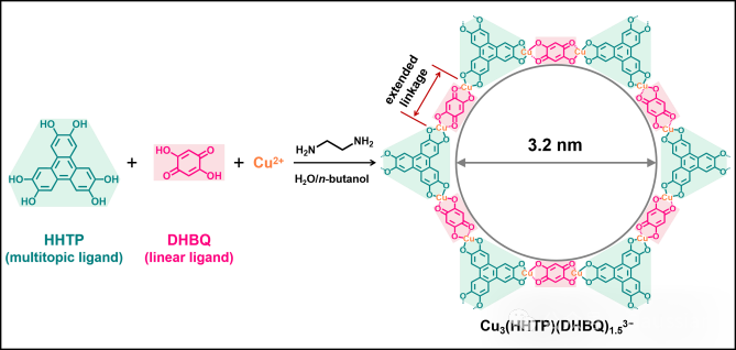 示意图1. Cu3(HHTP)(DHBQ)1.53-的合成与骨架结构