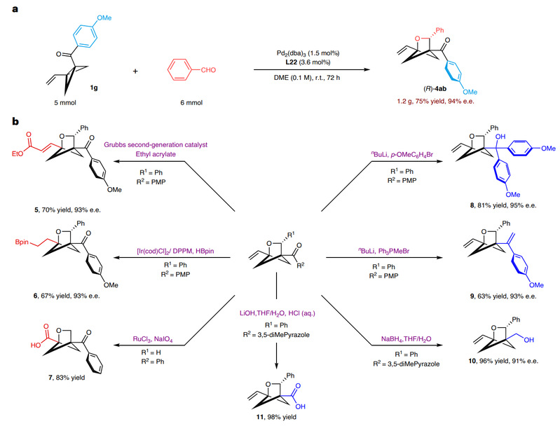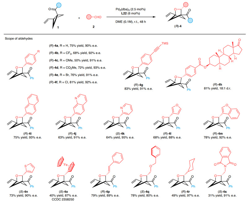 文献来源:Palladium-catalysed [2σ + 2π] cycloaddition reactions of bicyclo[1.1.0]butanes with aldehydes. Nat. Synth. doi: 10.1038/s44160-024-00659-6