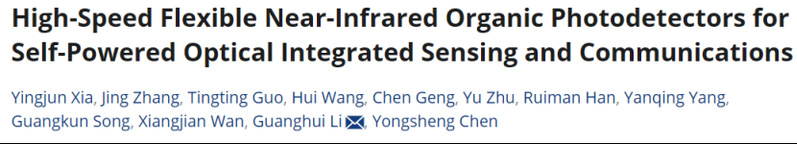 为了解决这些问题,Betway必威李光辉团队提出了一种柔性自供能光学ISAC(O-ISAC),相关成果以“High‐Speed Flexible Near‐Infrared Organic Photodetectors for Self‐Powered Optical Integrated Sensing and Communications”为题发表在期刊Advanced Functional Materials上。