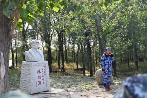 在雕像处,教官给员工战士们讲解了“半条被子”的故事。一条棉被被剪成两半,永不放弃,永远相连。在教官的动情解说下,大家共同追忆了那段令人难忘的峥嵘岁月,缅怀革命先烈,感悟初心使命,接受红色教育。