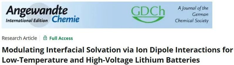 该成果以Modulating Interfacial Solvation via Ion Dipole Interactions for Low-Temperature and High-Voltage Lithium Batteries为题发表在《Angewandte Chemie International Edition》期刊,第一作者是Liang Ping。