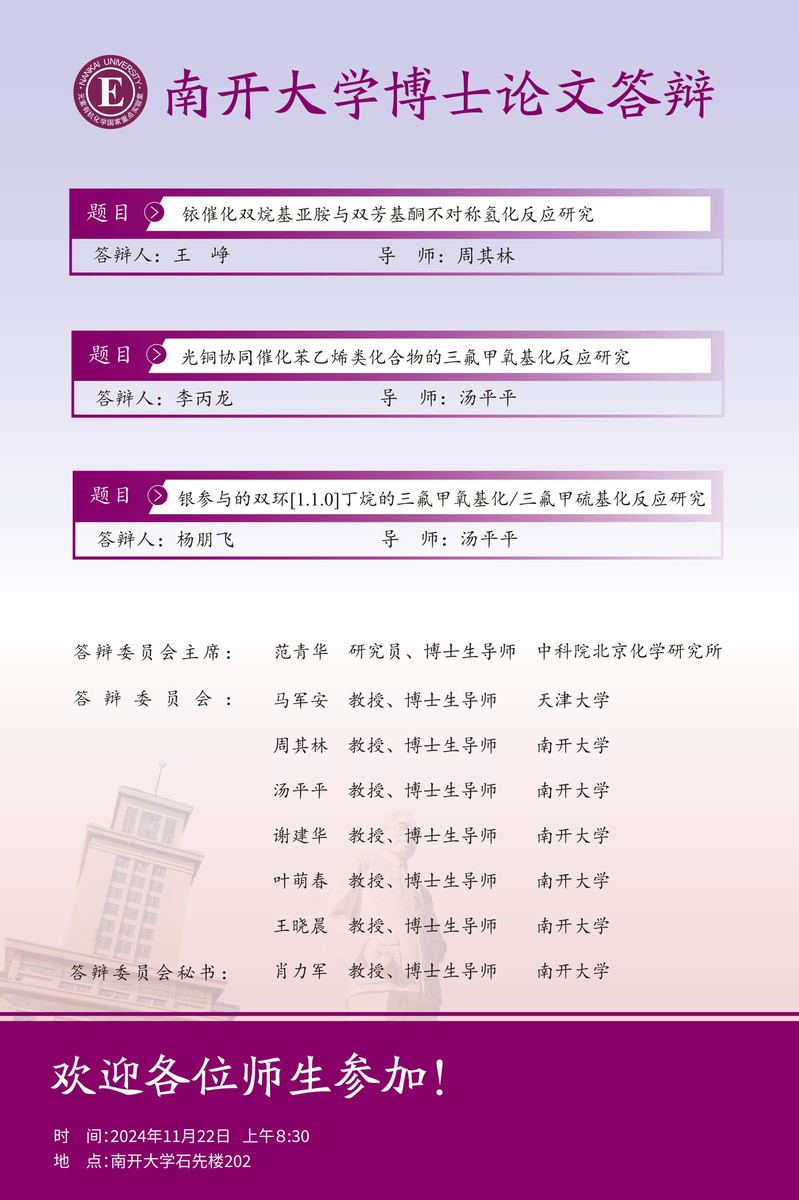 Betway必威博士研究生毕业论文答辩公告 王峥、杨朋飞、李丙龙