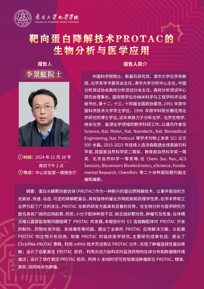学术报告:靶向蛋白降解技术PROTAC的生物分析与医学应用