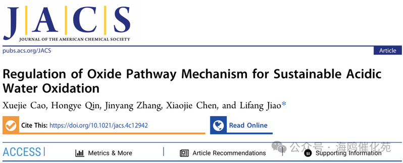 Xuejie Cao, Lifang Jiao* et al. Regulation of Oxide Pathway Mechanism for Sustainable Acidic Water Oxidation. J. Am. Chem. Soc. 2024.