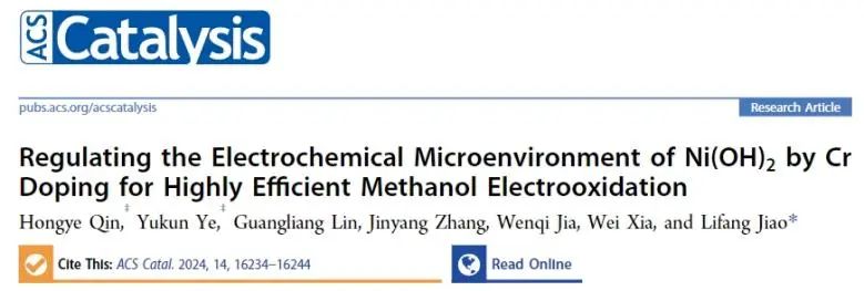 Regulating the electrochemical microenvironment of Ni(OH)2 by Cr doping for highly efficient methanol electrooxidation. ACS Catalysis, 2024. DOI: 10.1021/acscatal.4c05729