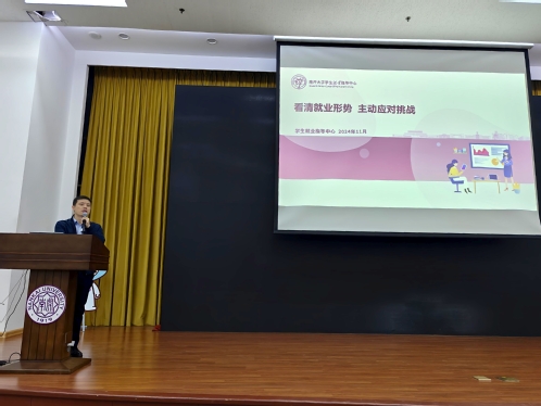 讲座伊始,王友江结合自身丰富的就业工作经验,从供需关系、就业结构、就业心态三个方面深刻剖析了当下就业形势。通过分享近些年Betway必威毕业生的毕业去向数据,他强调在大学期间做好生涯规划的重要性和必要性,希望同学们尽早明确个人发展目标,认真思考未来的职业发展方向,更好地规划大学学习生活。