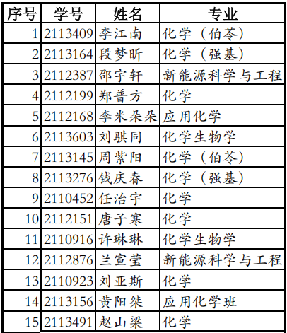 抽取的15位同学名单如下: