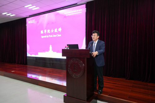 陈军在致辞中介绍了南开化学学科和有机新物质创造前沿科学中心近年来取得的成果。期待在中村荣一教授的支持下,能够为南开科研创新引入基于世界顶尖新型分子影像技术的革新技术,为该领域学科群建设、交叉队伍组建、拔尖人才培养增添新的发展引擎,助力南开为化学事业发展作出新的更大贡献。