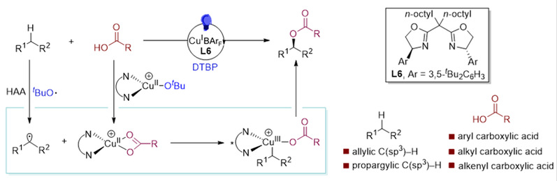 图1. C(sp3)–H键与羧酸不对称氧化偶联反应。图片来源:J. Am. Chem. Soc.