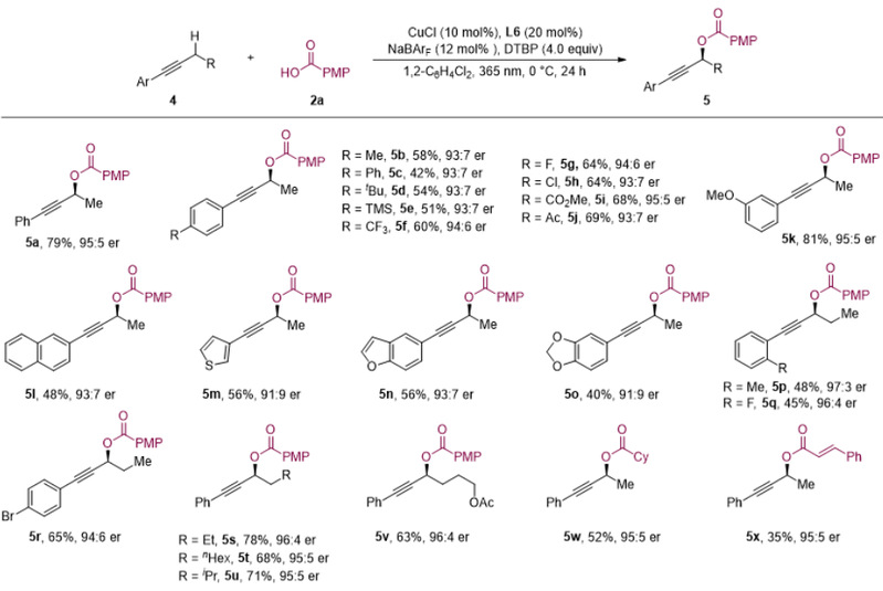 图3. 炔烃与羧酸不对称氧化偶联反应底物范围。图片来源:J. Am. Chem. Soc.