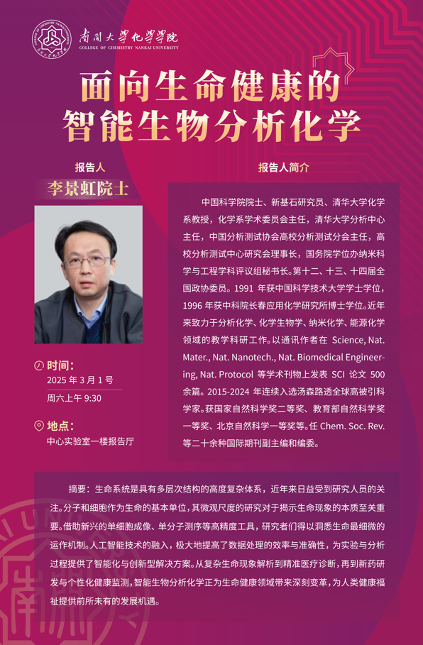 学术报告:面向生命健康的智能生物分析化学