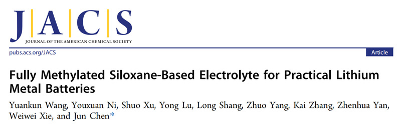 Wang, Y., Ni, Y., Xu, S., Lu, Y., Shang, L., Yang, Z., Zhang, K., Yan, Z., Xie, W., & Chen, J. (2025). Fully methylated siloxane-based electrolyte for practical lithium metal batteries. Journal of the American Chemical Society.