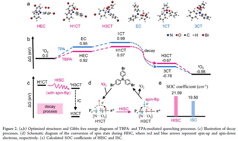 通过在三(4-溴苯基)胺(TBPA)中引入溴原子,增强了自旋轨道耦合(SOC)效应,从而有效促进了单线态氧(¹O₂)向三线态氧(³O₂)的转化,抑制了其带来的副反应。