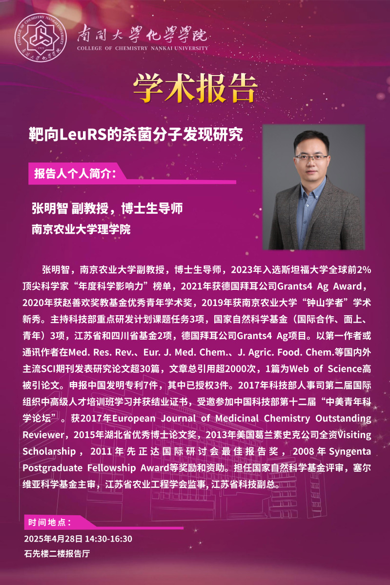 学术报告:靶向LeuRS的杀菌分子发现研究