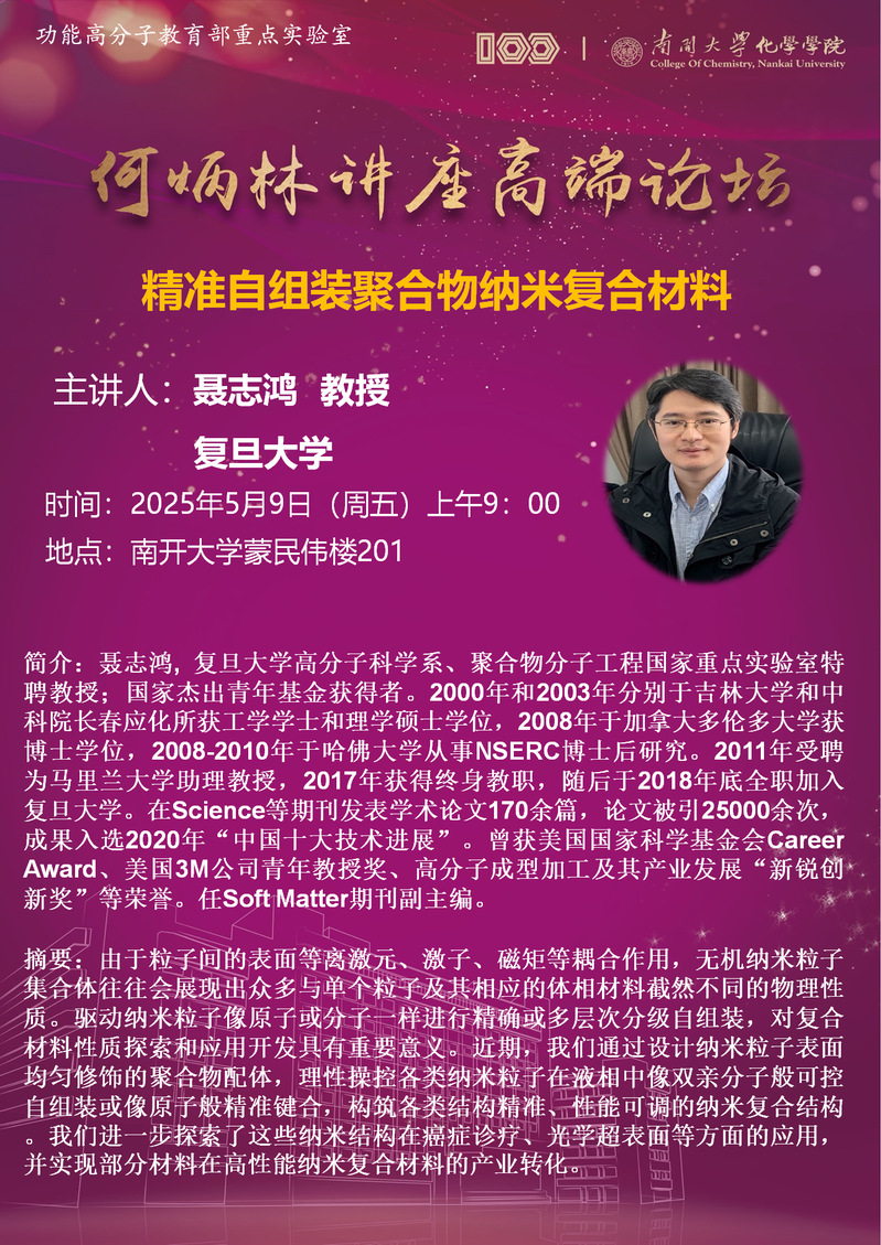 何炳林讲座高端论坛:精准自组装聚合物纳米复合材料