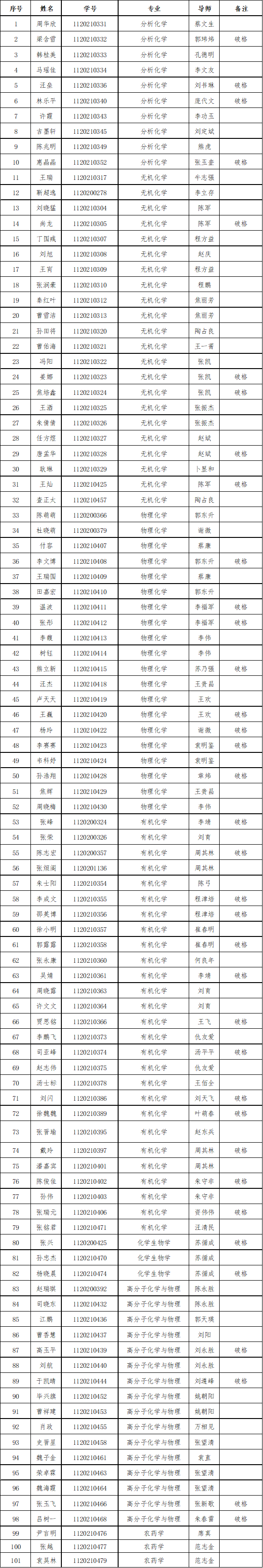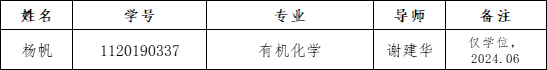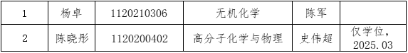化学学位评定分委员会/植物保护学位评定分委员会2024-2025学年第二学期学位申请受理名单 学博/学硕