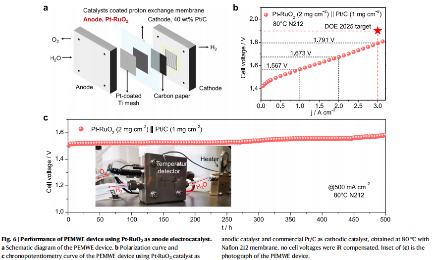 达到3 A/cm²电流密度仅需1.791 V电压,超越美国能源部2025年目标(1.9 V@3 A/cm²)