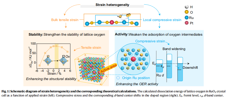 研究团队创新性地引入单原子铂(Pt)掺杂,在RuO₂晶体中构建了独特的“应变异质性”结构: