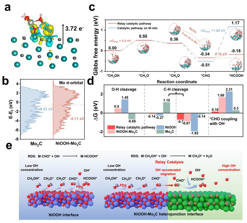 图5. 理论计算解析NiOOH-Mo2C接力催化MOR机理