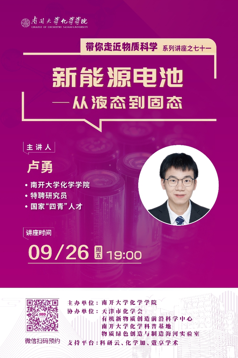 带你走近物质科学系列讲座之七十一:新能源电池-从液态到固态