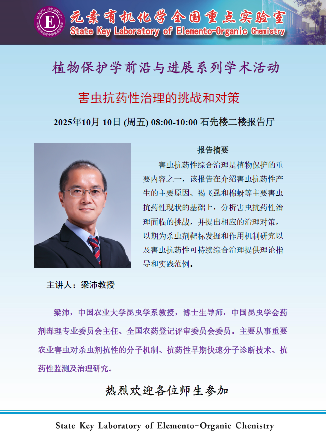 植物保护学前沿与进展系列学术活动:害虫抗药性治理的挑战和对策