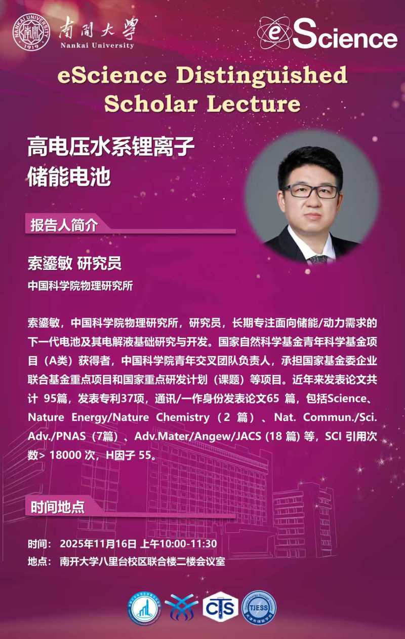 eScience Distinguished Scholar Lecture:高电压水系锂离子储能电池