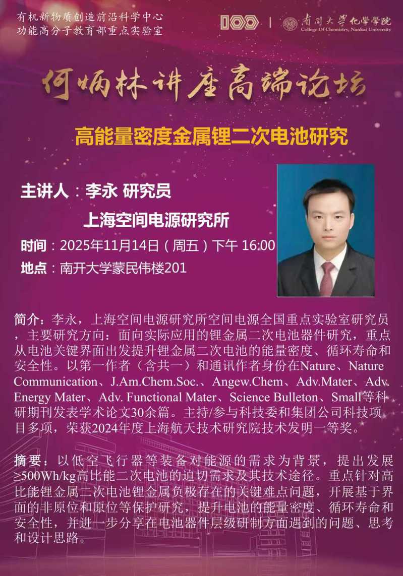 何炳林讲座高端论坛:高能量密度金属锂二次电池研究