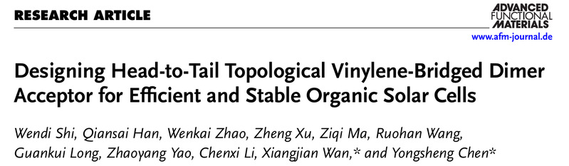 W. Shi, Q. Han, W. Zhao, et al. “ Designing Head-to-Tail Topological Vinylene-Bridged Dimer Acceptor for Efficient and Stable Organic Solar Cells.” Adv. Funct. Mater. (2025): e23116.