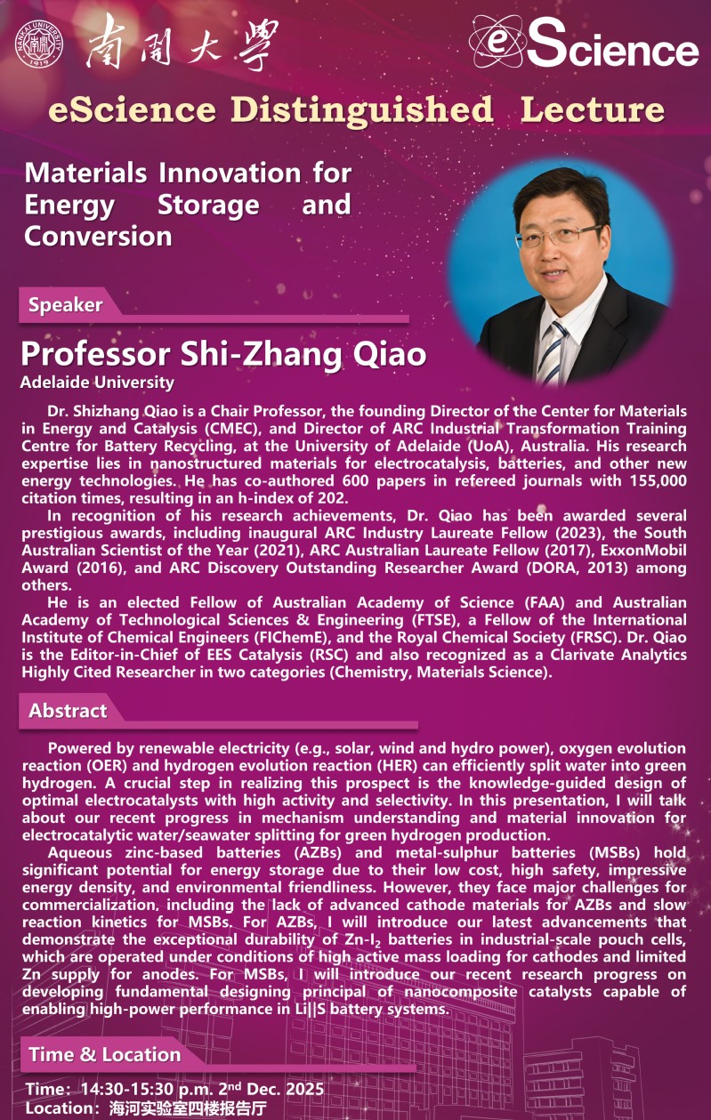 eScience Distinguished Lecture:Materials lnnovation for Energy Storage and Conversion