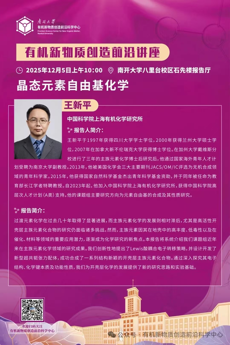 有机新物质创造前沿讲座:晶态元素自由基化学