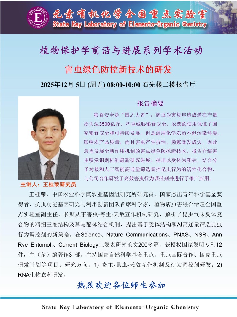 植物保护学前沿与进展系列学术活动:害虫绿色防控新技术的研发