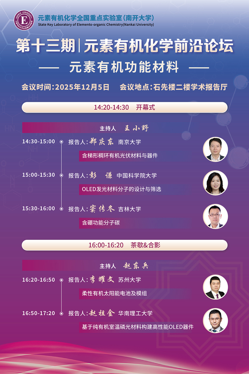 第十三期元素有机化学前沿论坛:元素有机功能材料