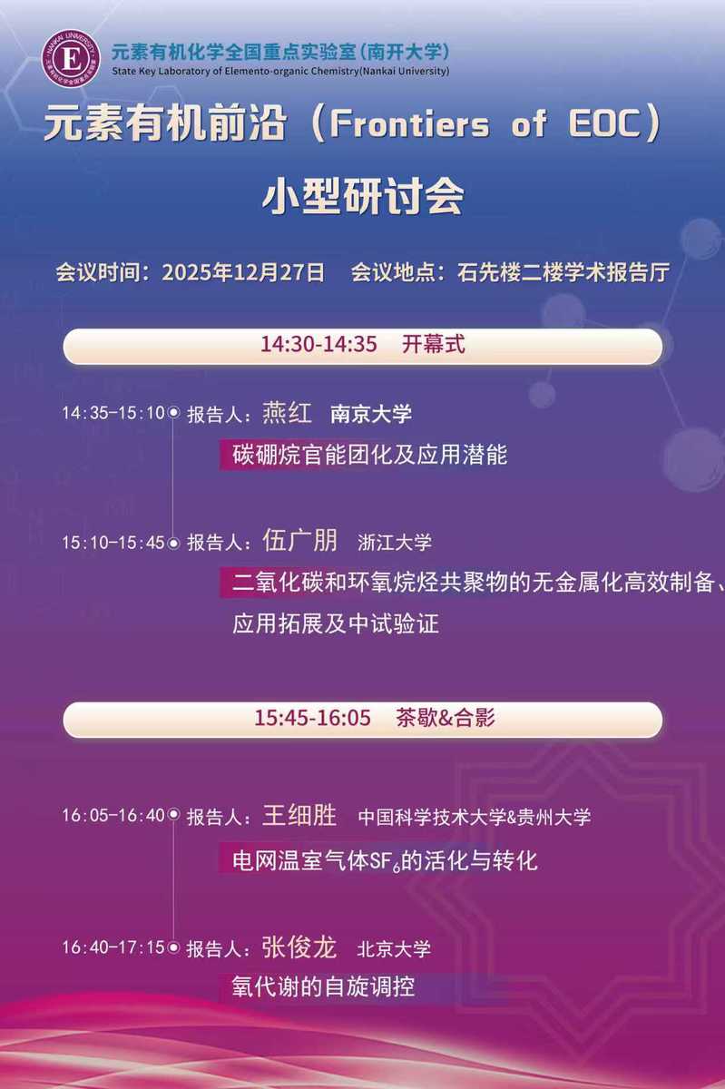 元素有机前沿(Frontiers of EOC)小型研讨会