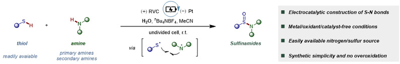 图1. 电氧化策略突破亚磺酰胺合成中的非自由基限制(来源:Sci. Adv.)