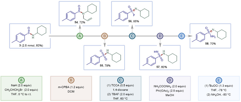 图4. 亚磺酰胺3的后续转化反应(来源:Sci. Adv.)