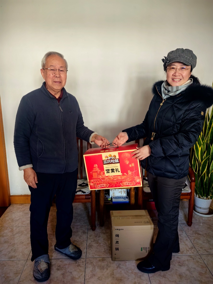 新春佳节将至,岁寒情暖人心。为传承弘扬劳模精神,传递组织关怀与温暖,近日,应化所工会工作人员专程走访慰问了我所 80 岁以上退休劳模陶克毅老师,为陶老师送上节日的美好祝福及慰问品,向毕生扎根科研、奉献应化所的老劳模致以崇高敬意。
