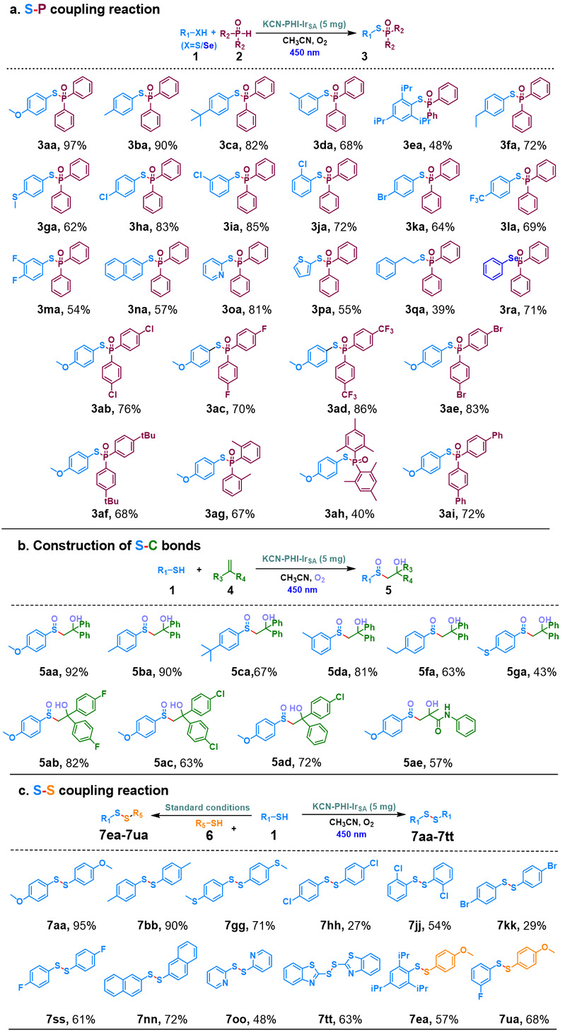 图6. KCN-PHI-IrSA光催化合成S-P键、S-C键和S-S键(来源:ACS Catal.)