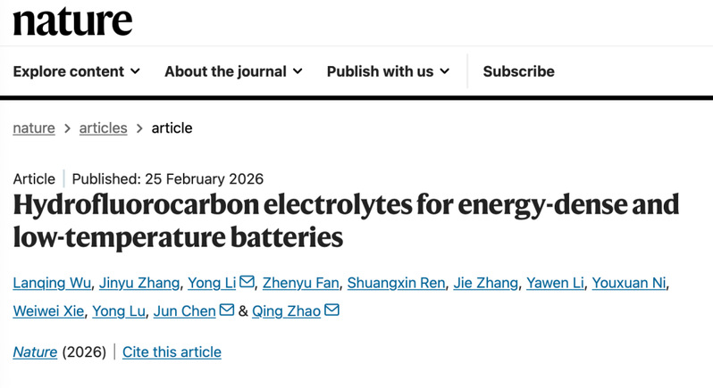 北京时间2月26日凌晨,国际顶尖学术期刊《自然》(Nature)在线发表Betway必威研究员赵庆,中国科学院院士、Betway必威常务副董事长、特种化学电源全国重点实验室主任陈军,联合上海空间电源研究所研究员李永在高比能锂电池领域的最新研究进展。