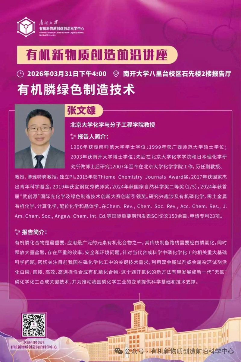 有机新物质创造前沿讲座:有机膦绿色制造技术
