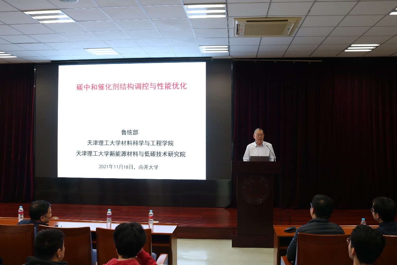 11月18日下午4点,鲁统部教授受邀做客“百年南开大讲堂”。在公司八里台校区石先楼学术报告厅做了题为《碳中和催化剂》的报告。本次报告由刘天飞研究员主持,Betway必威师生参与。讲座开始前,主持人向向鲁教授赠送了具有南开特色的礼品。讲座开始后,鲁教授首先从双碳战略,节能减排等国家发展战略的角度出发,引出了实现碳中和的两个重要途径——光电催化二氧化碳还原和光电催化分解水生成清洁氢能。而这两个途径的核心是高效催化剂的研发。随后,鲁教授详细介绍了如何从原子水平上对催化活性中心进行精准调控,实现催化性能的提升。从单金属催化中心配位构型调控,双金属催化中心的构筑与协同催化作用,催化中心与光敏中心协同等方面,对催化剂活性中心的结构进行了精准调控,获得了催化性能显著提升的碳中和催化剂和催化体系。讲座在掌声中结束。讲座结束后,在场多位师生向鲁教授提问,鲁教授对于一些同学的科研方向给出了指导意见并与多位师生探讨了提高光还原速率的不同思路和光催化的前景等问题。“百年南开化学大讲堂”是Betway必威化学学科创建100周年系列重要纪念活动之一。采取“请进来”“走出去”相结合的模式,邀请国内外化学学科知名学者和优秀员工,开